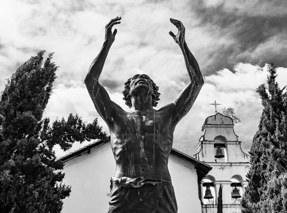 When I first saw the seemingly larger than life sculpture of San Juan Bautista (Saint John the Baptist) I didn’t know that it represented him. The interpretation I made was of a man pleading to the heavens for mercy. I still experience it this way.